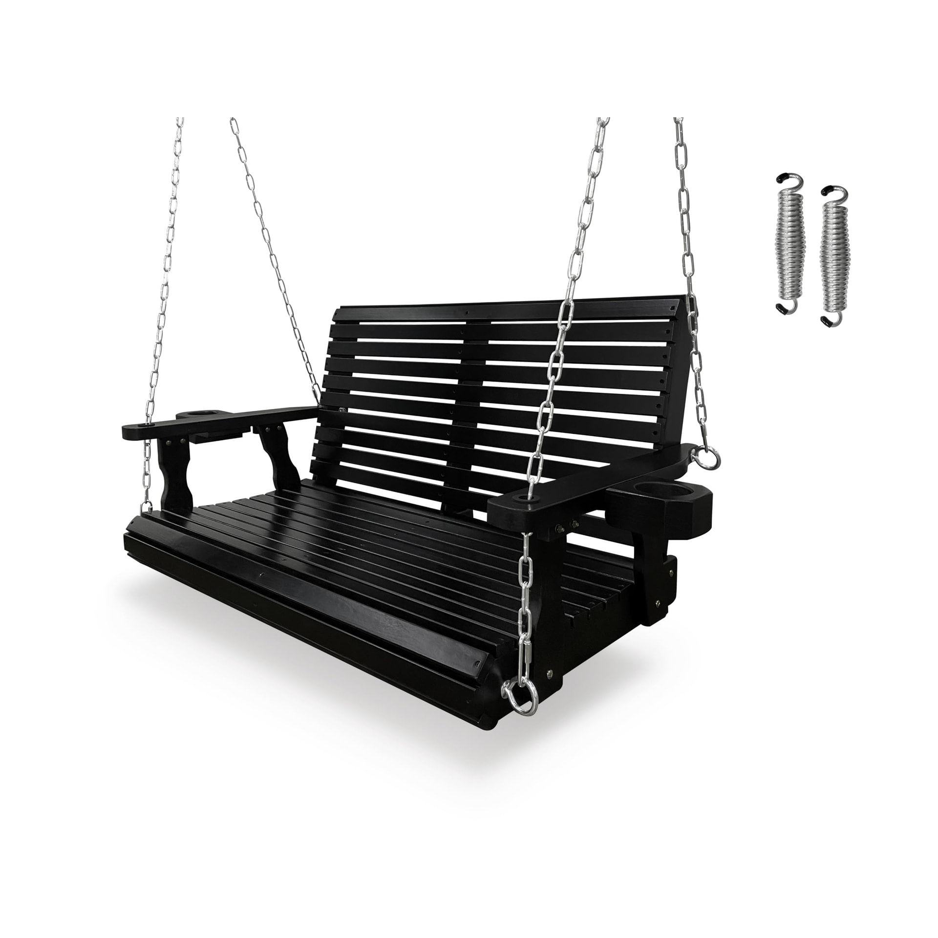 Fortune Candy Wooden Porch Swing with Cupholders, Hanging Chains and 7mm Springs, for Outdoor Patio Garden Yard