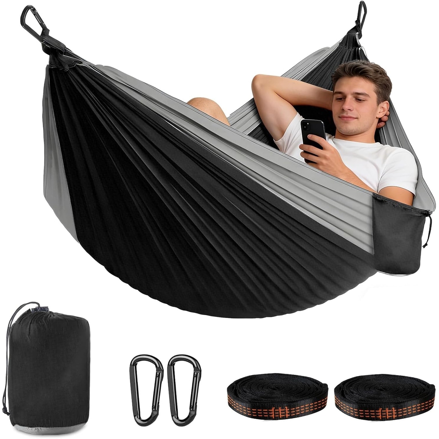 Double Camping Hammock with Tree Straps, Portable Travel Hammock for Hiking Backpacking