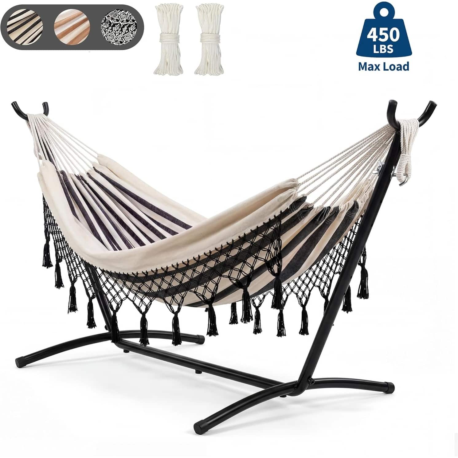 Portable Double Hammock with Lace and Heavy-Duty Steel Stand, MAX 450 LBS Capacity for Outdoor Patio Backyard Poolside
