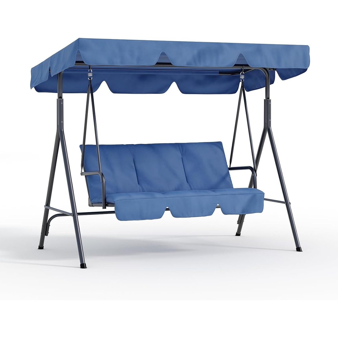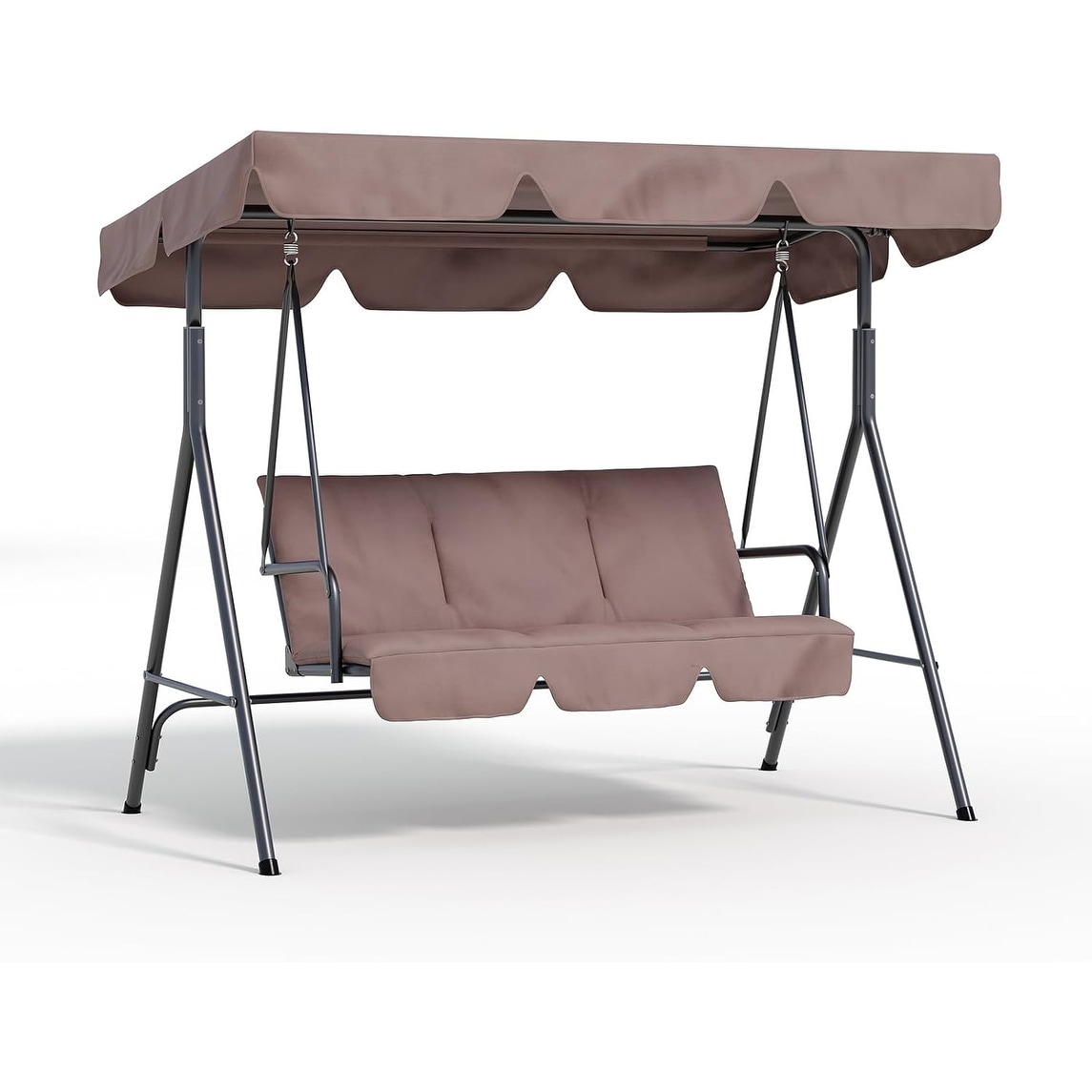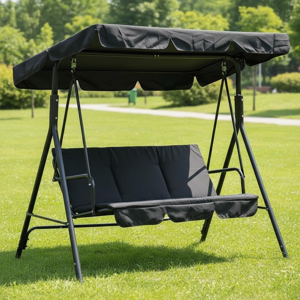 Steel 3-Seat Patio Swing with Stand and Removable Cushion - Outdoor Canopy Swing (529lb Capacity)