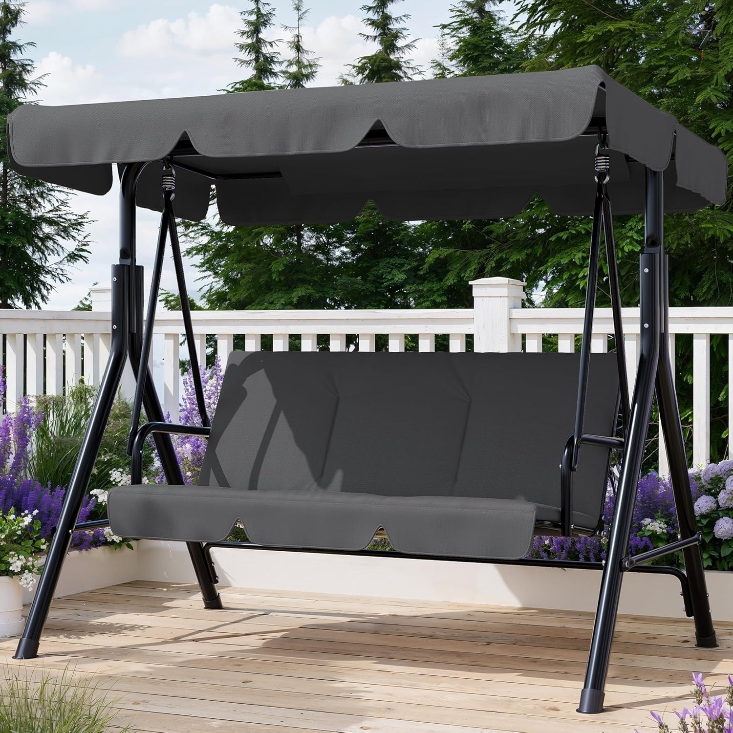 3-Person Patio Swing Chair with Canopy, Adjustable Shade Outdoor Porch Swing for Backyard