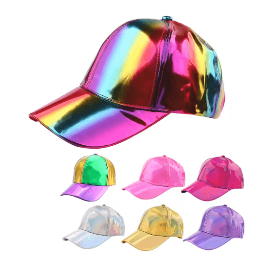 Holographic Rainbow Color Changing Baseball Cap Laser PU Snapback Party Hat golden