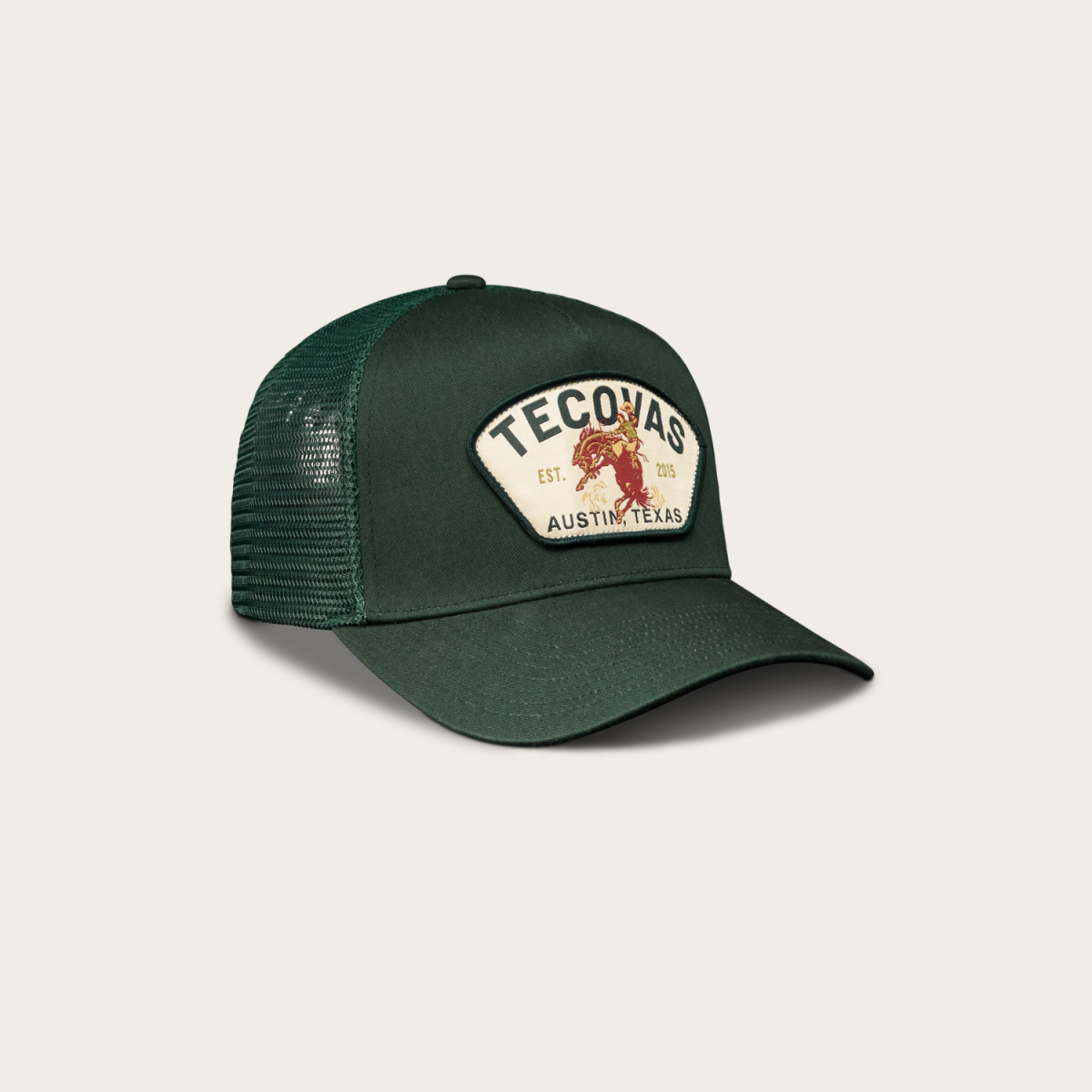Tecovas Buckin Bronc 5 Panel High Pro Trucker Hats, Forest Green, Cotton / Polyester