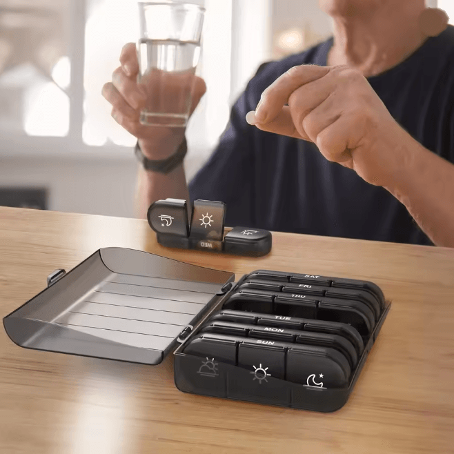 7 Day Pill Organizer Three Times Daily Anti Light Medicine Box c