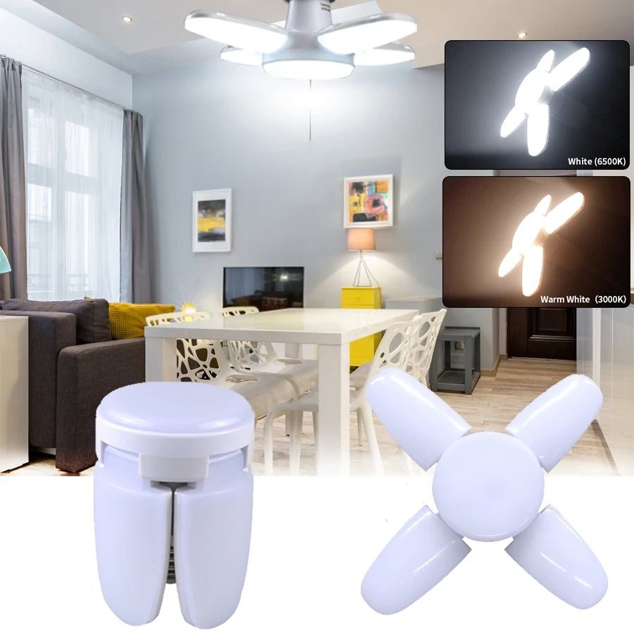 E27 Fan Shape LED Lamp Foldable 28W Light Bulb 85v 265v White