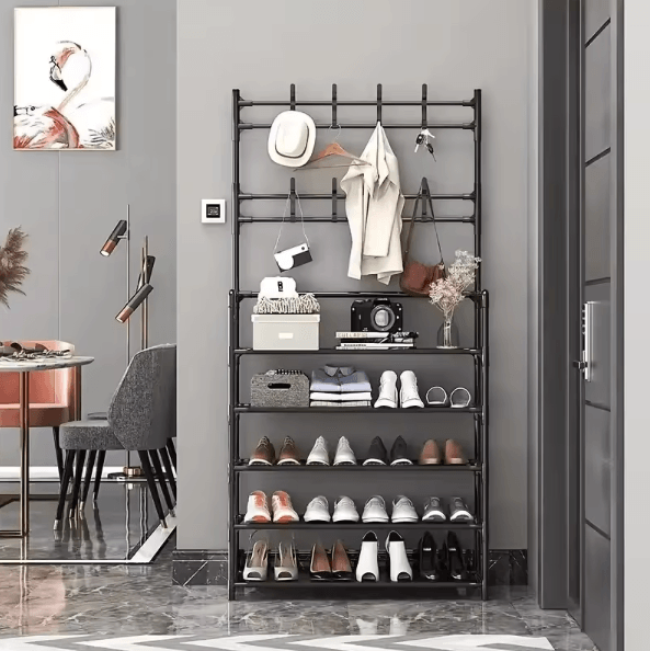 Entryway Coat Rack With Shoe Storage Multi Functional Hall Tree Organizer For Clothes Shoes Bags And Accessories white