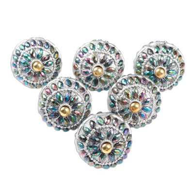Rainbow Charm,'Iridescent Beaded Wood Drawer Knobs (Set of 6)'