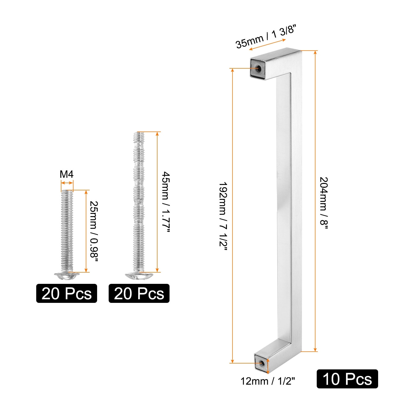 Square Bar Drawer Handles, Modern Kitchen Cabinets Pulls Stainless Steel Slim Cupboard Pull
