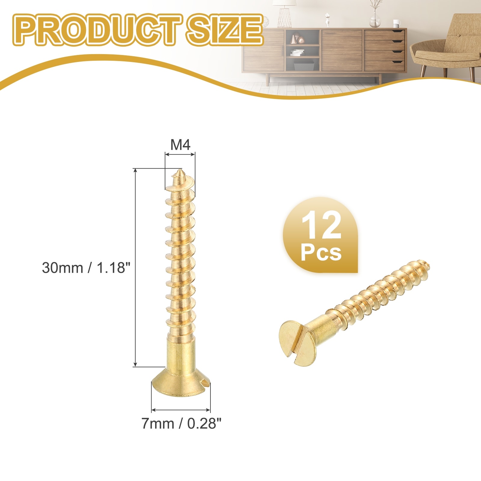 Brass Wood Screws, Slotted Drive Flat Head Self Tapping Screw Countersunk for Furniture - Gold