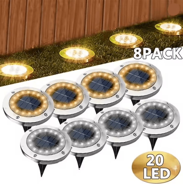 SolarGlow Outdoor Disk Lights Set 4 Pcs 8led white