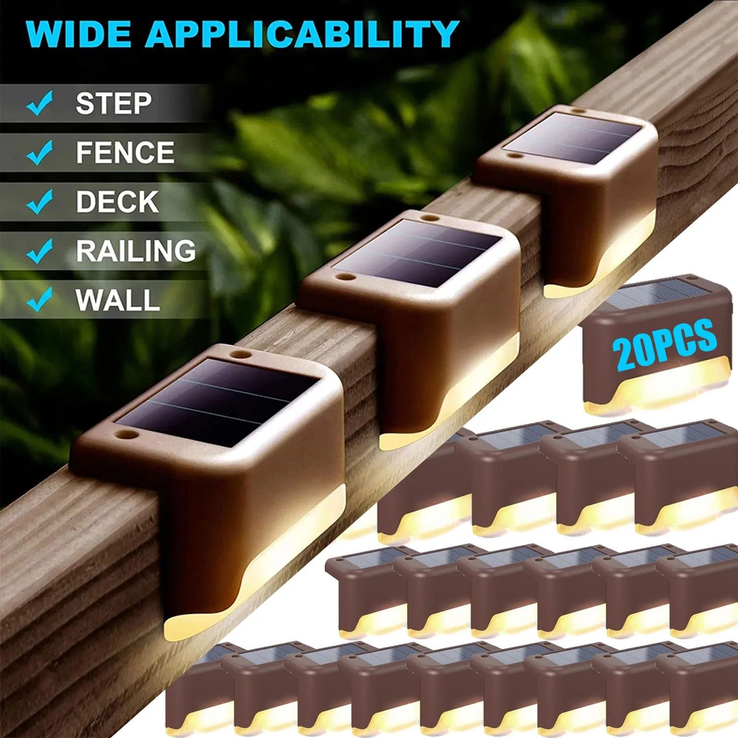 Warm White LED Solar Step Lamp Outdoor Waterproof Garden Fence And Path Light brown white
