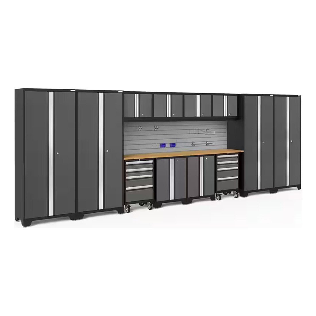 Newage Products Pro 3.0 Series 12-Piece Garage Cabinet Set With 3X Multi-Use Lockers, Grey / Bamboo Worktop / None