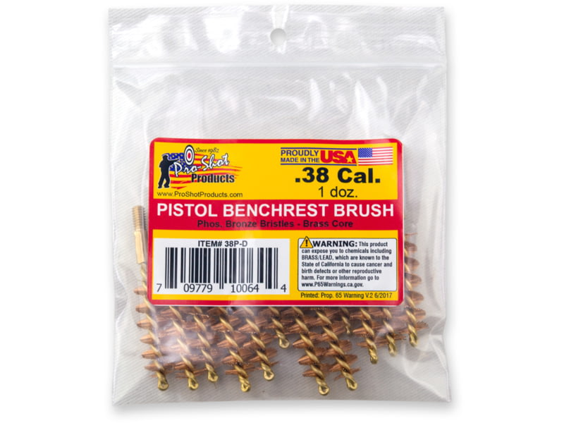 Pro-Shot .38 Caliber Pistol Brush Dozen Pack 12 Quantity 38P-D