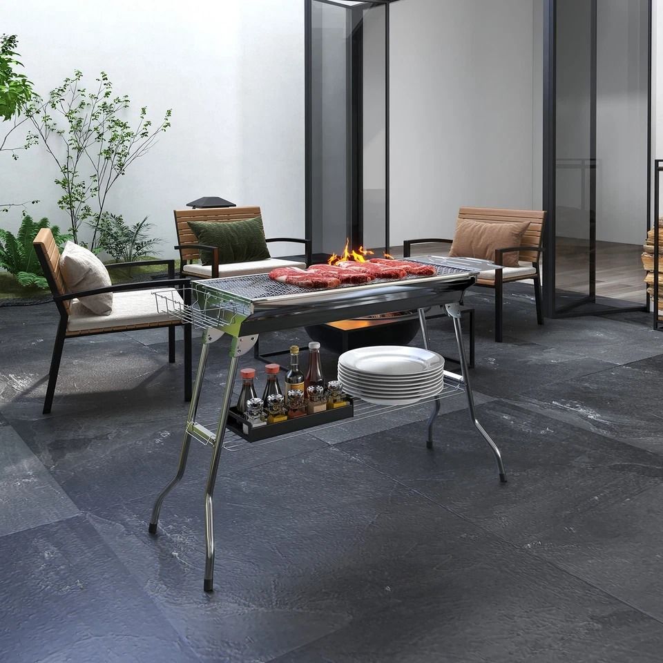 Outsunny Portable Charcoal BBQ Grill Folding Stainless Steel Camping Grill Outsunny Portable Charcoal BBQ Grill Folding Stainless Steel Camping Grill