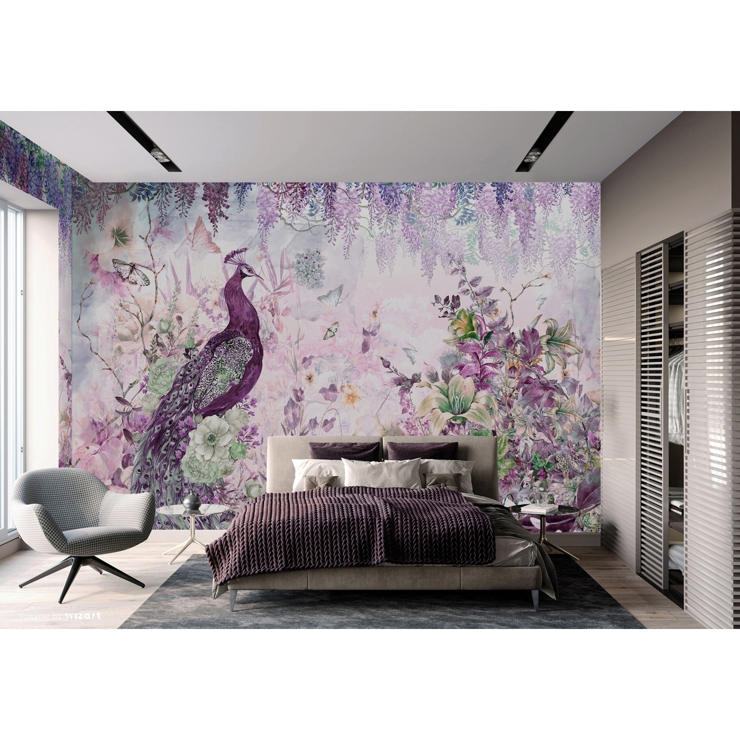 Peacock Wallpaper Mural with Floral and Wisteria Accents