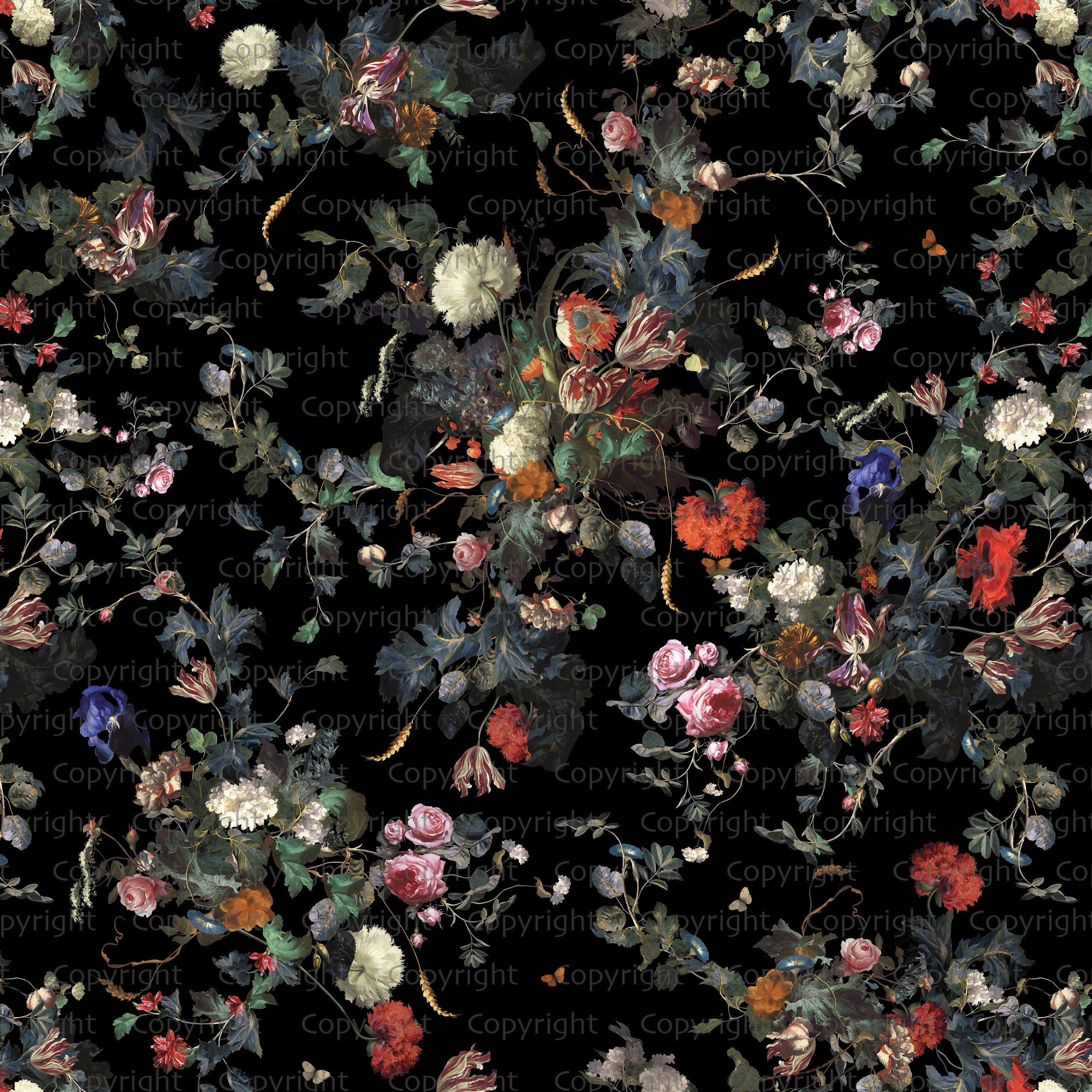 Dark Botanical Blooming Floral Wallpaper Mural