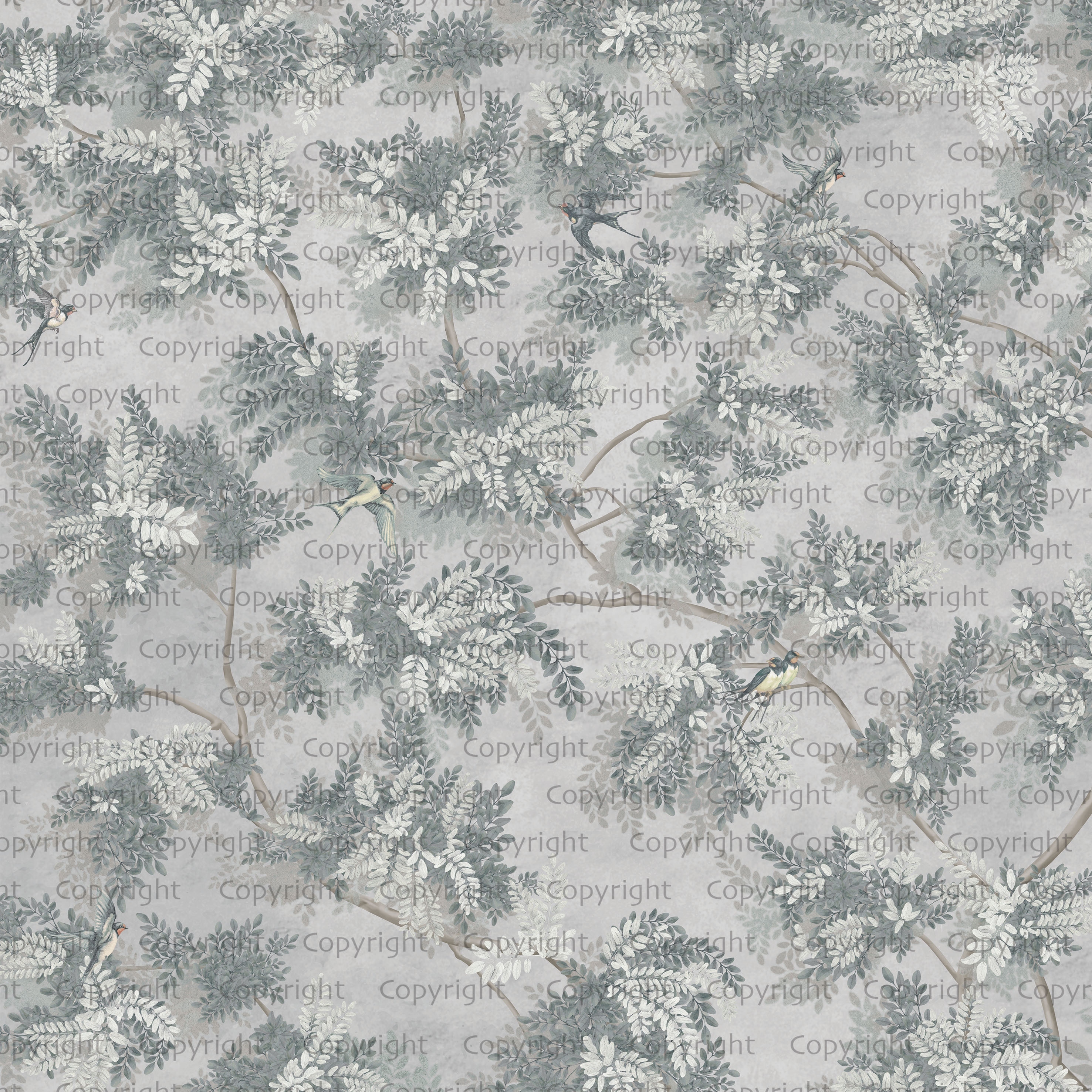 Verdant Canopy with Songbirds Botanical Wallpaper Mural