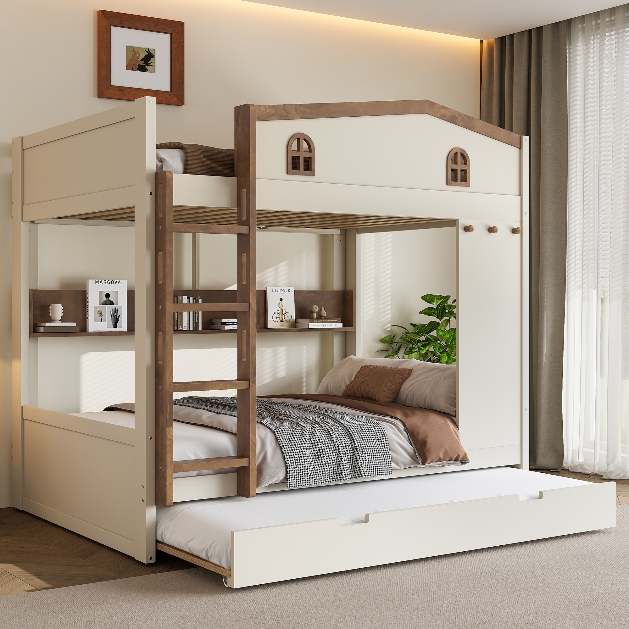 Twin over Twin over Full XL Bunk Bed with Safety Guardrails