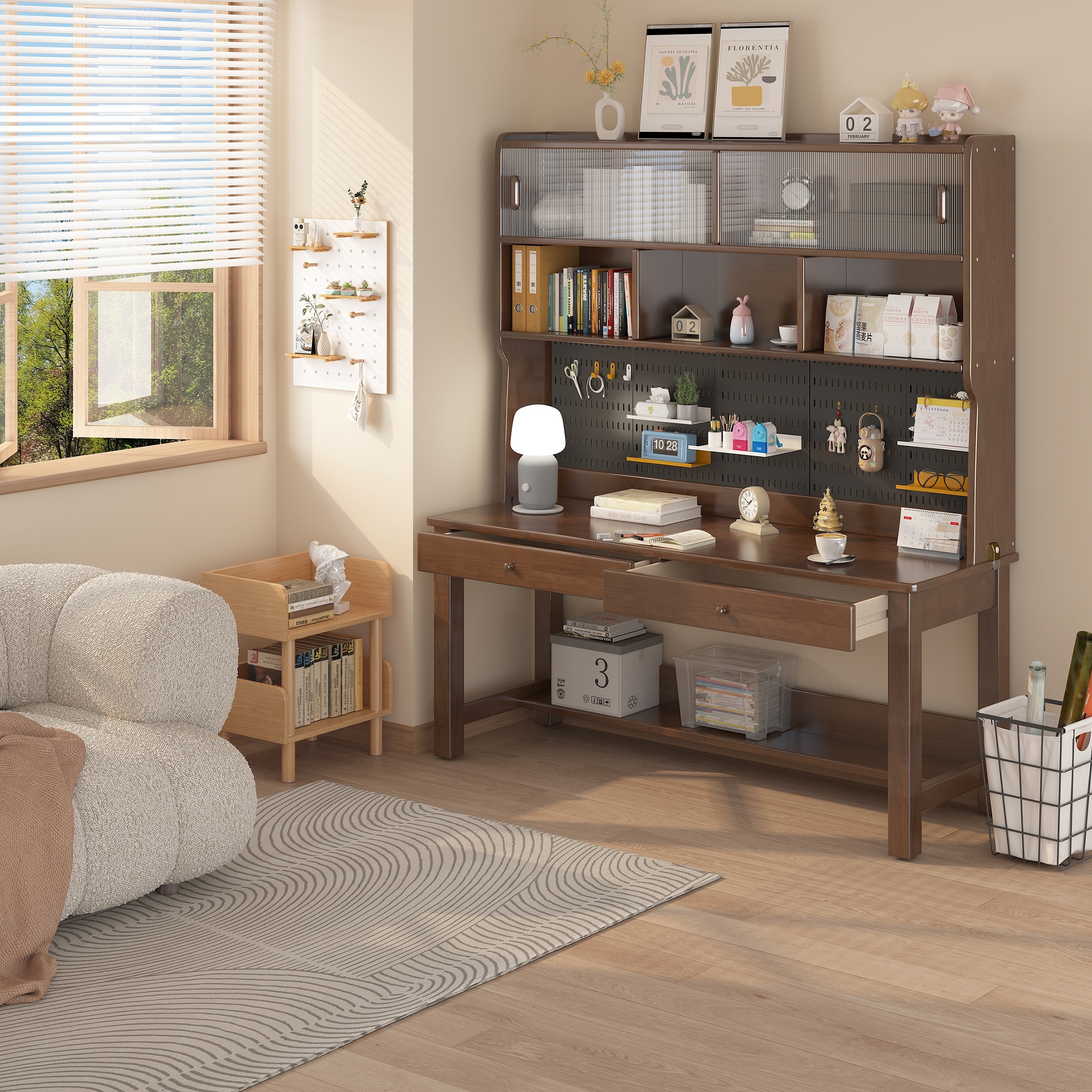 Kids Desk with Hutch, Wood Study Table with Storage, Writing Desk