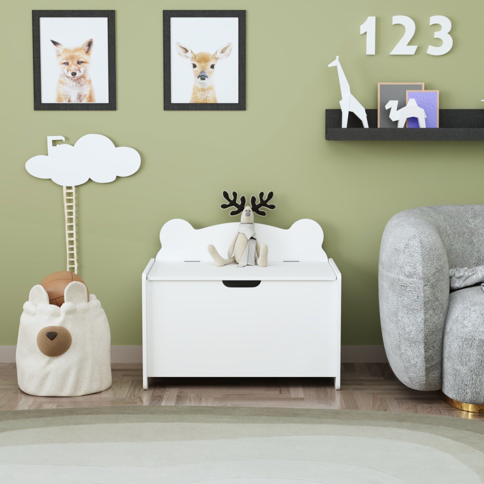Kids Toy Wooden Organizer Storage Chest with Safety Hinged Lid for Ages 2+