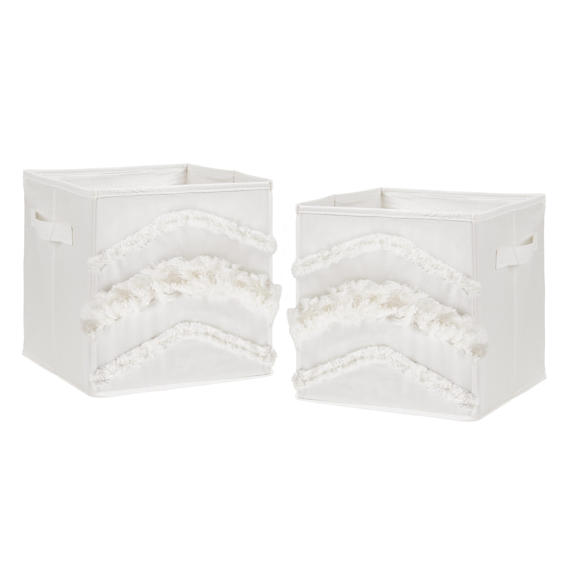 Ivory Boho Bohemian Collection Foldable Fabric Storage Bins - Gender Neutral Off White Farmhouse Chic Minimalist Fringe