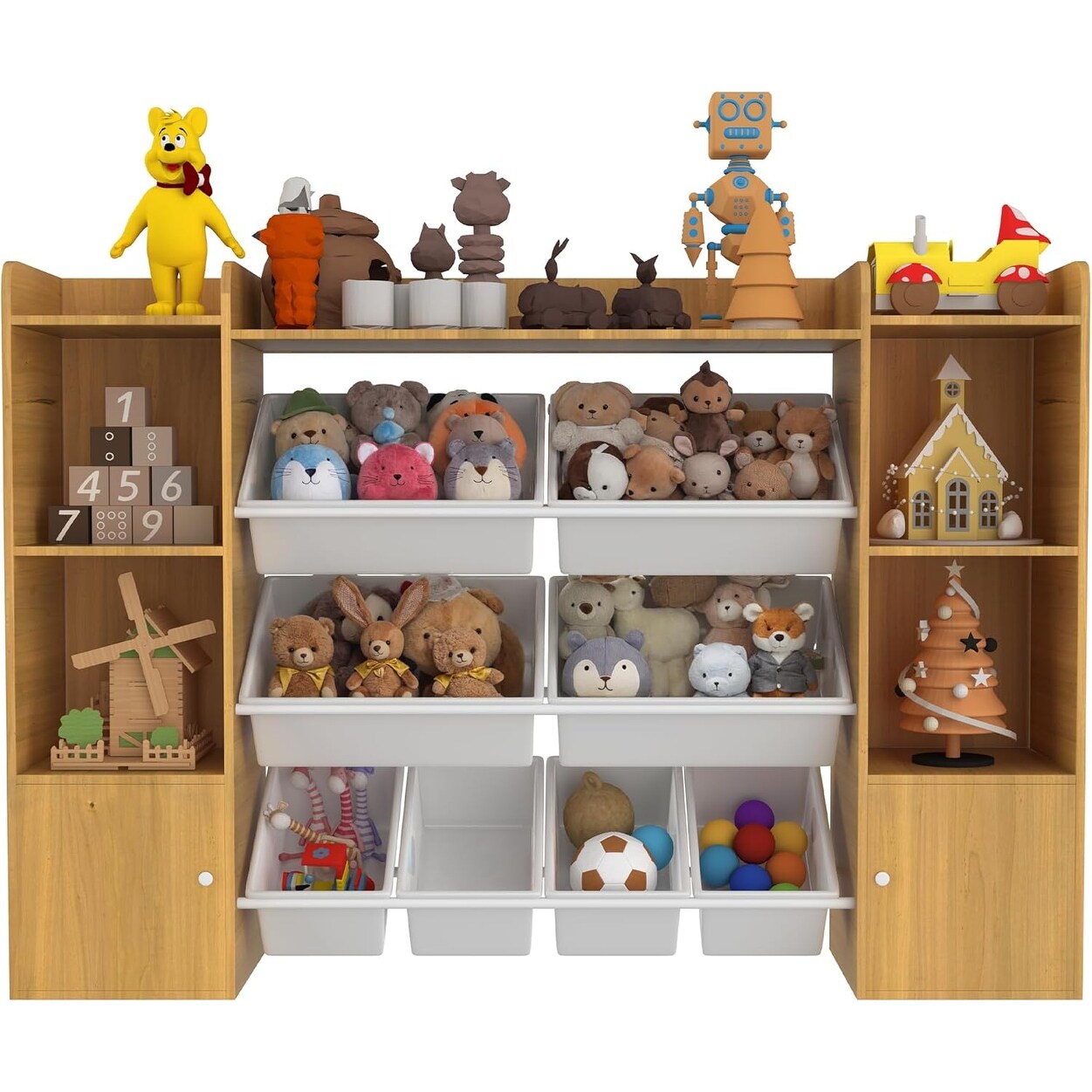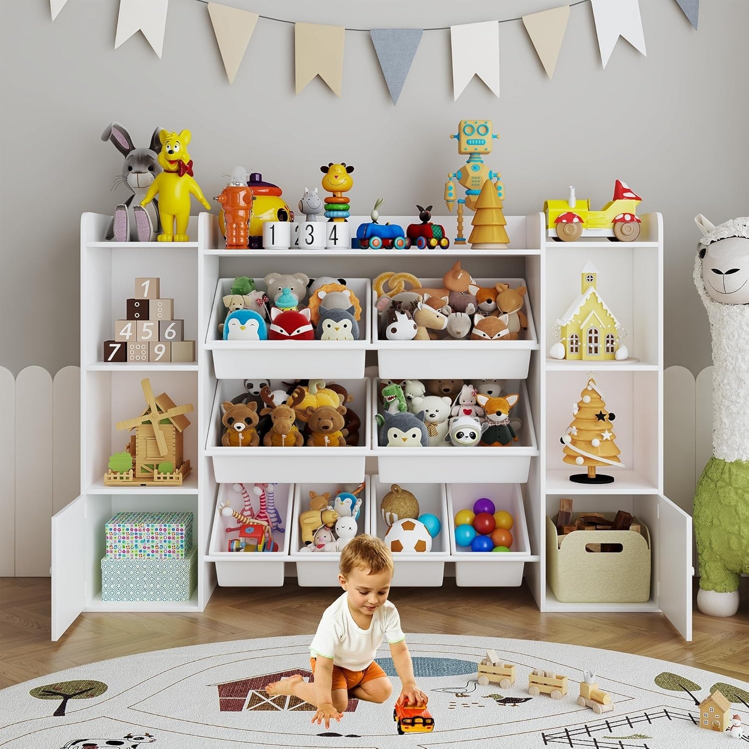 55" Kids Toy Storage Organizer w/8 Removable Bins & Anti-Tip - 2 Cubbies, Floor Cabinet