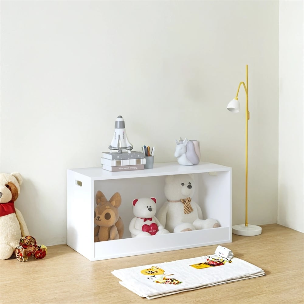 Open Toy Storage Box for Kids,White Wooden Organizer Bin