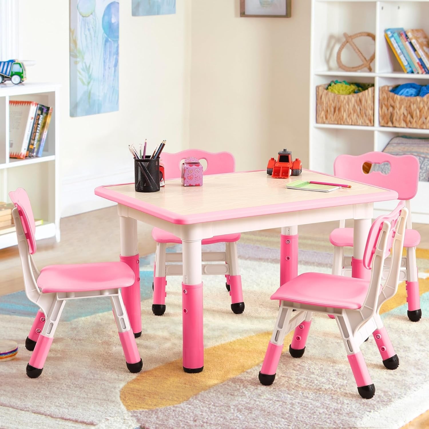 Kids Table & 4 Chairs Set, Adjustable Toddler Arts & Crafts Table for Ages 2–10, Activity Desk for Home & Classroom