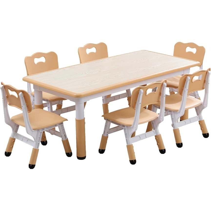 Height Adjustable Kids Table and 6 Chair Set for Ages 2-10