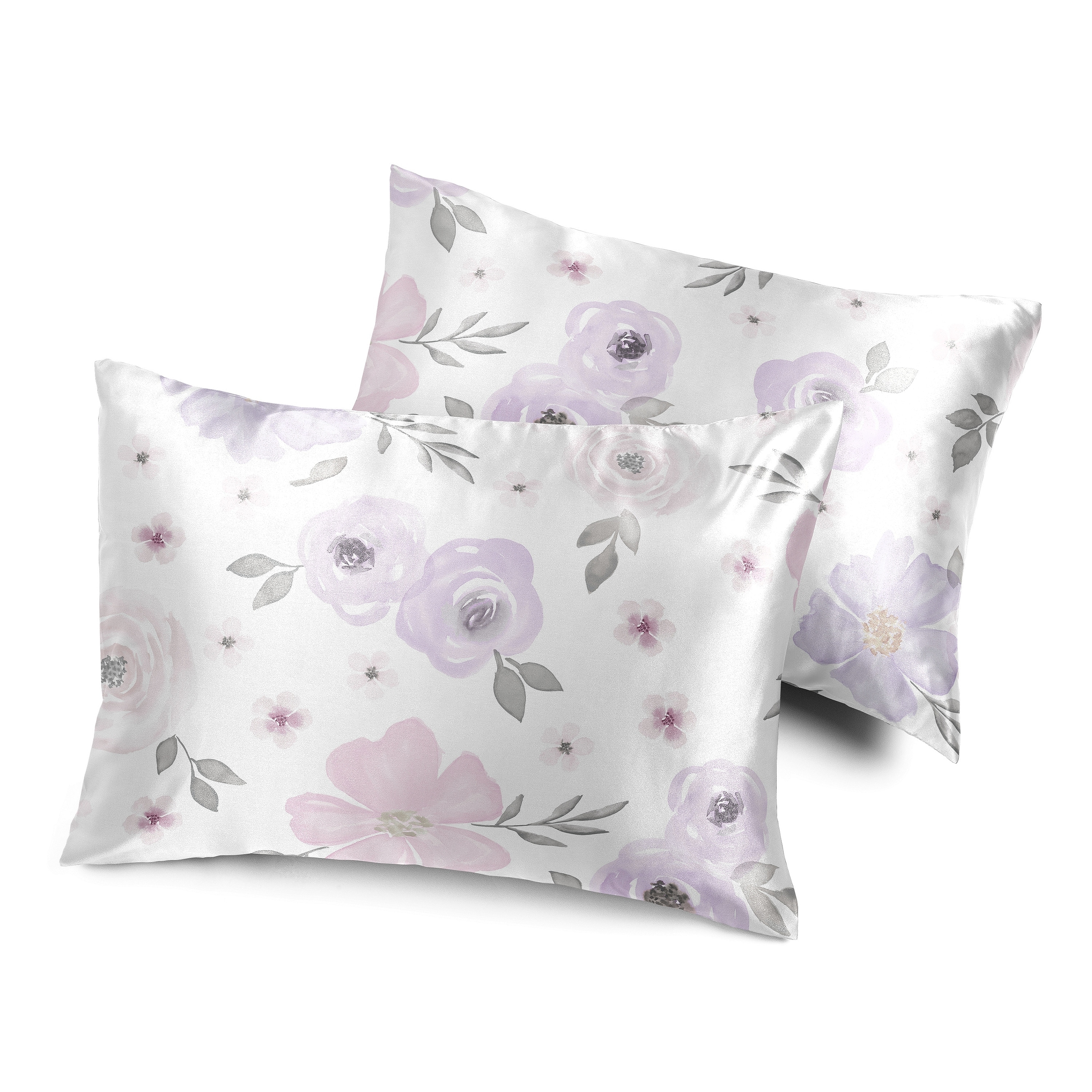 Sweet Jojo Designs Lavender Purple Boho Floral Girl Decorative Satin Pillowcases - 2 Pack Set - Bohemian, Shabby Chic Watercolor