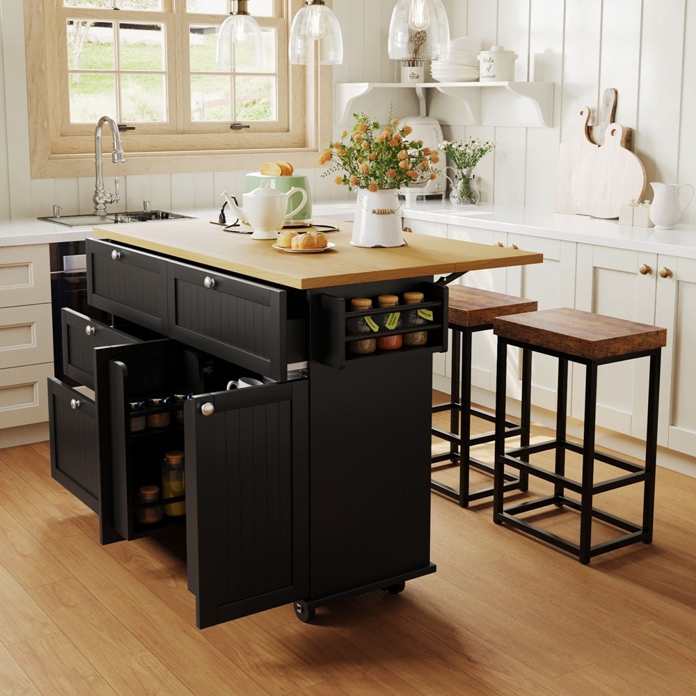 Farmhouse Kitchen Island with Drop Leaf and 2 Seatings