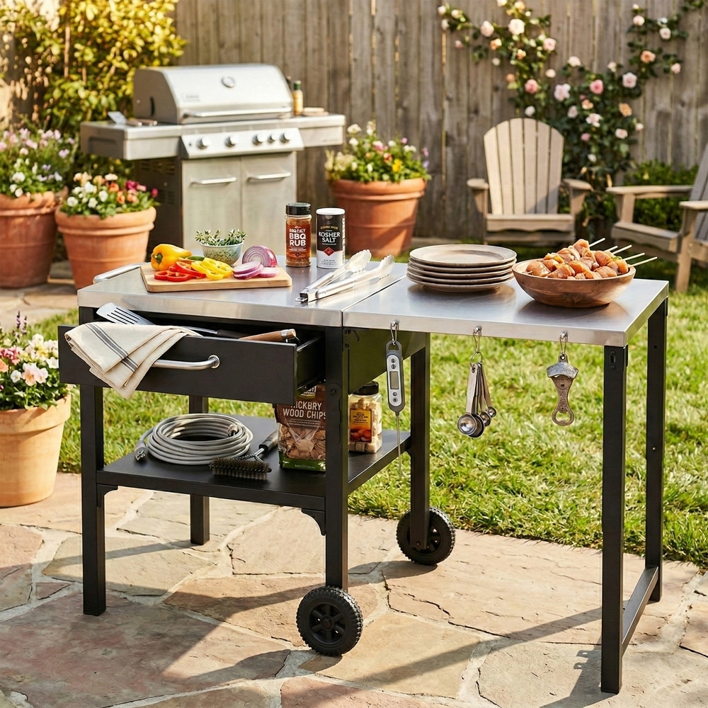 Outdoor Kitchen Cart Foldable Outdoor Prep Station Portable BBQ Cart Grill Cart