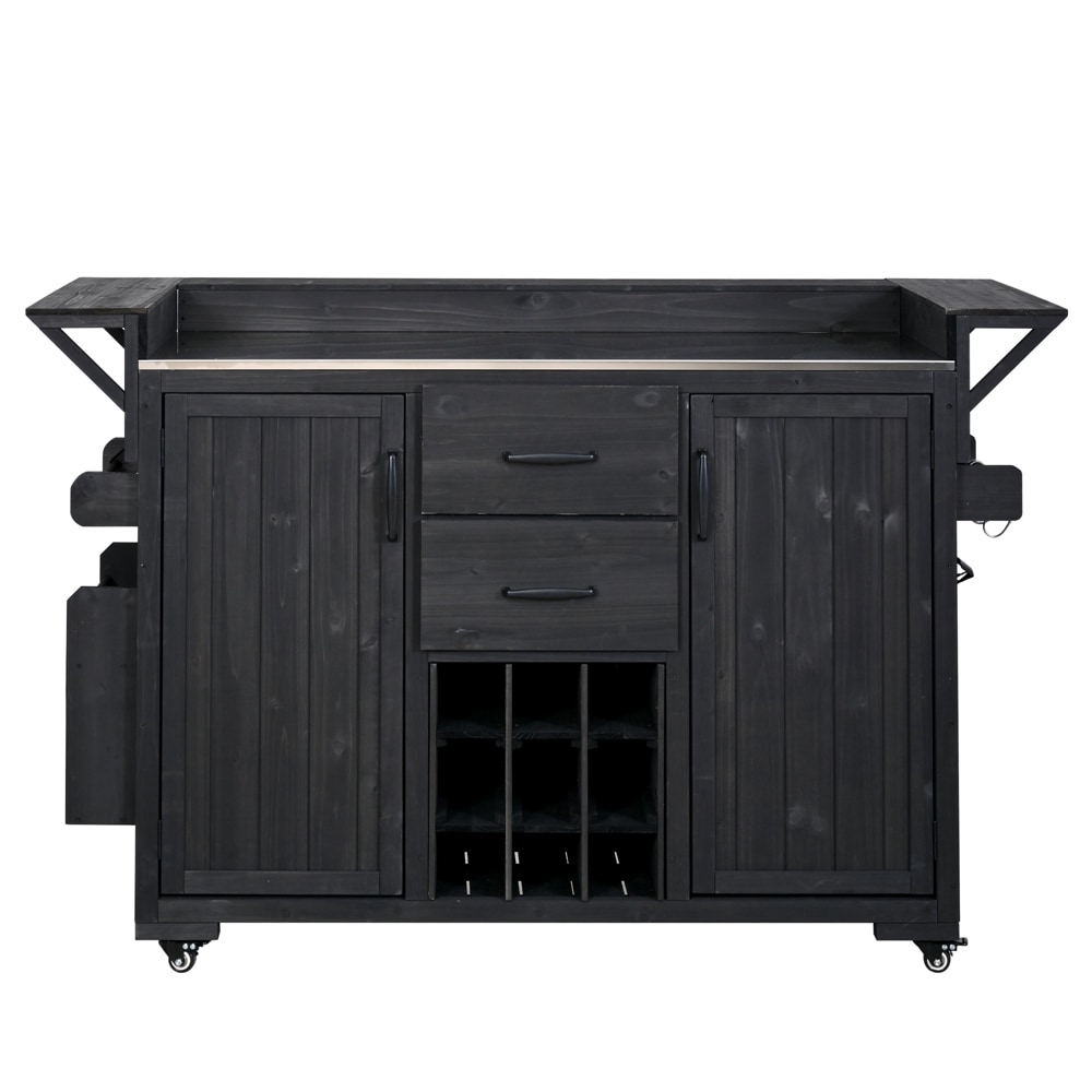 Kitchen Island with Storage & Towel Bar - Black Antique Finish, Adjustable Height, 60" Wide