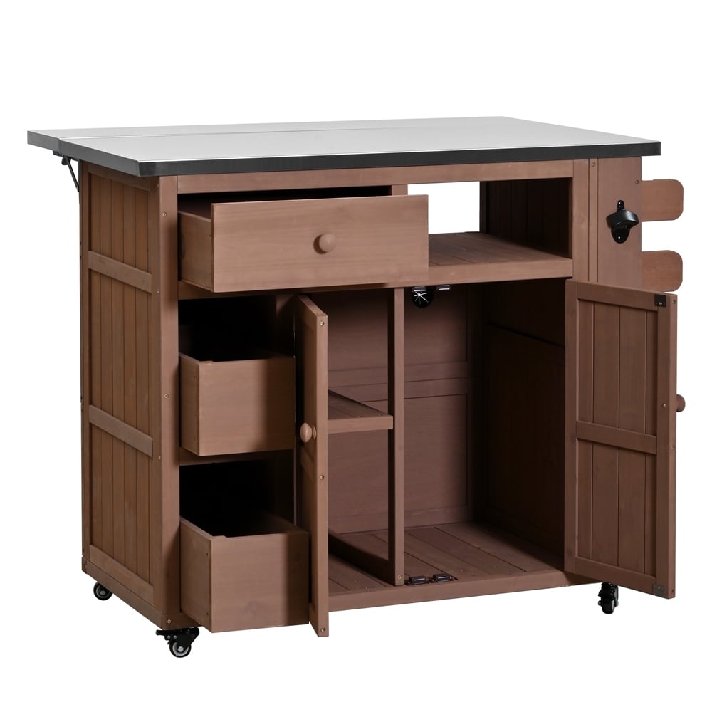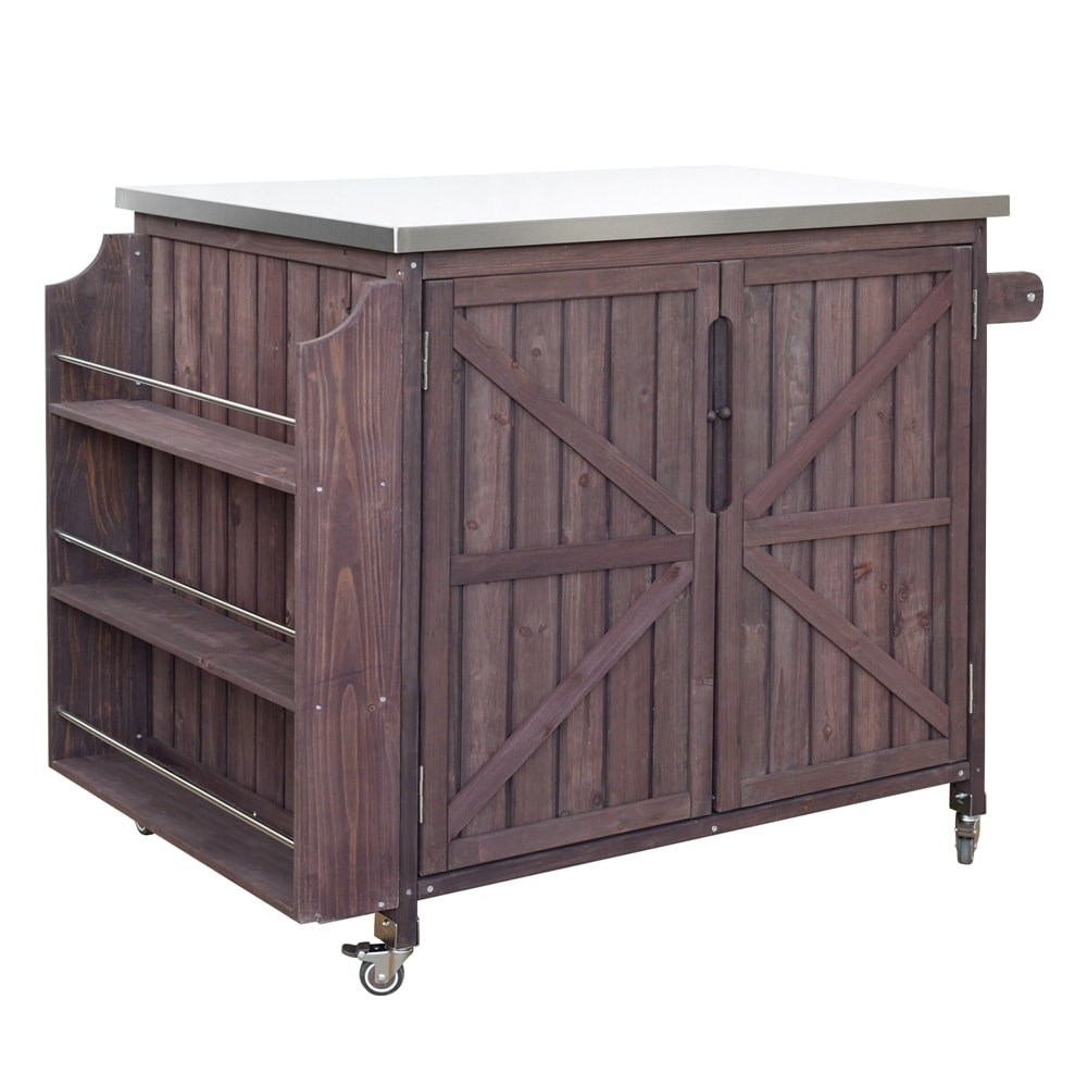 Outdoor Kitchen Island with Side Shelf, Outdoor Grill Cart with Storage Cabinet