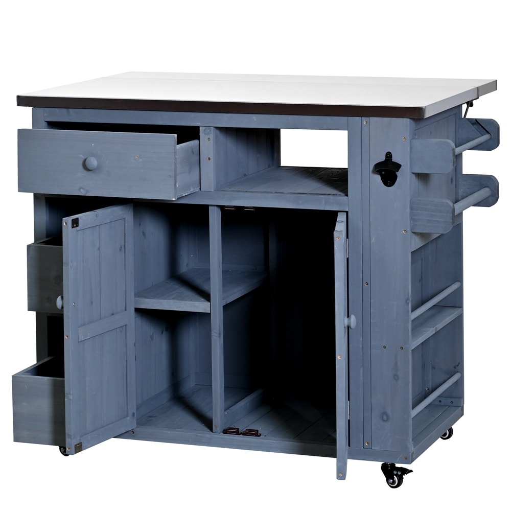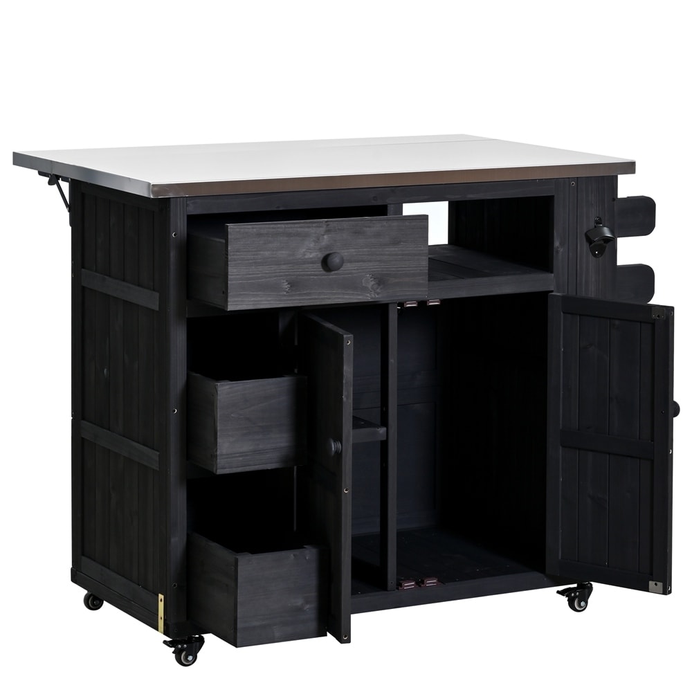 Farmhouse Kitchen Island with Drop Leaf, Kitchen Storage Island with Open Side Rack
