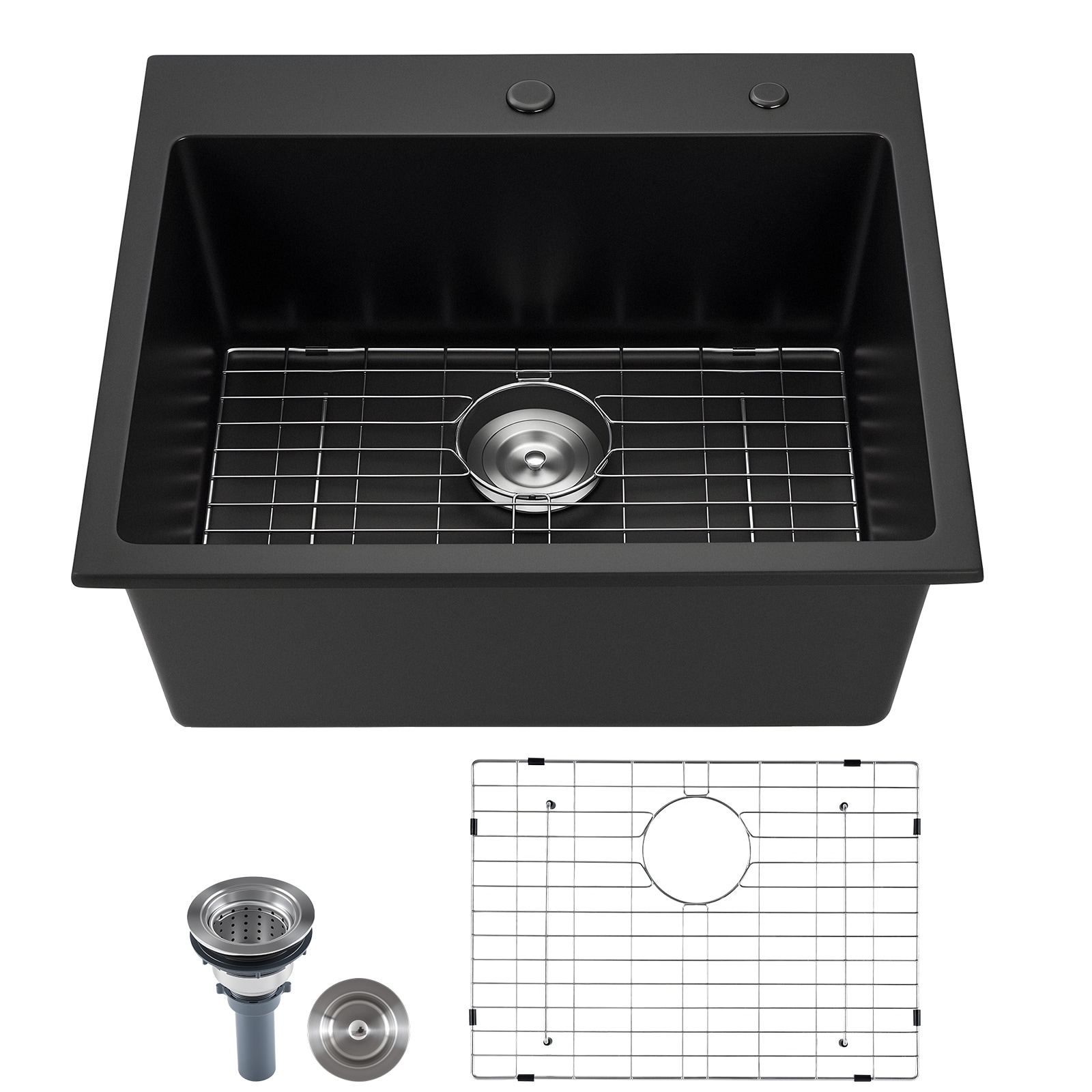 VEVOR Kitchen Sink Workstation, Drop-In Single Bowl Farmhouse Basin with Multiple Accessories