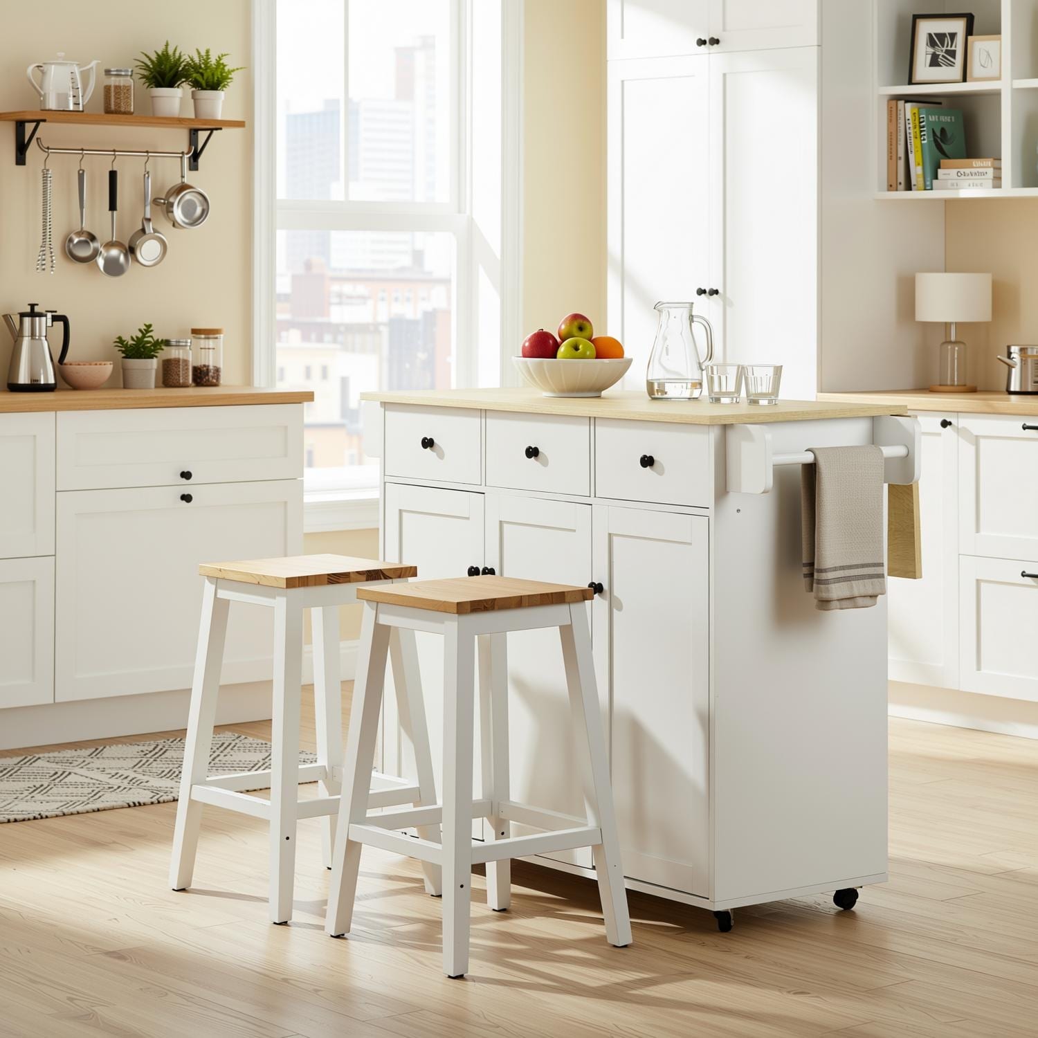 Rolling Kitchen Island Cart with Drawer, Adjustable Shelf, and 2 Towel Racks