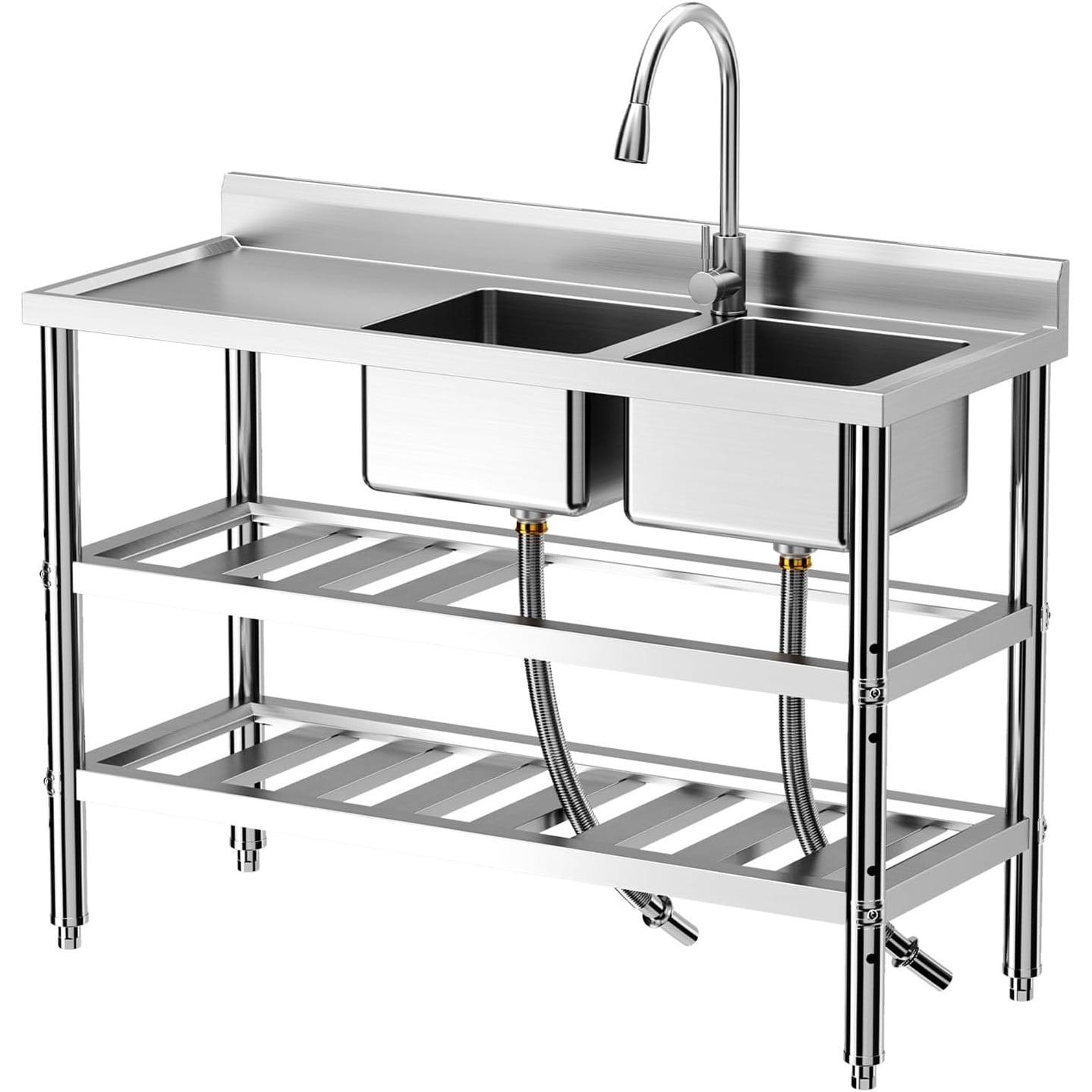 Zstar 47" Double Bowl Sink With Faucet & Shelves