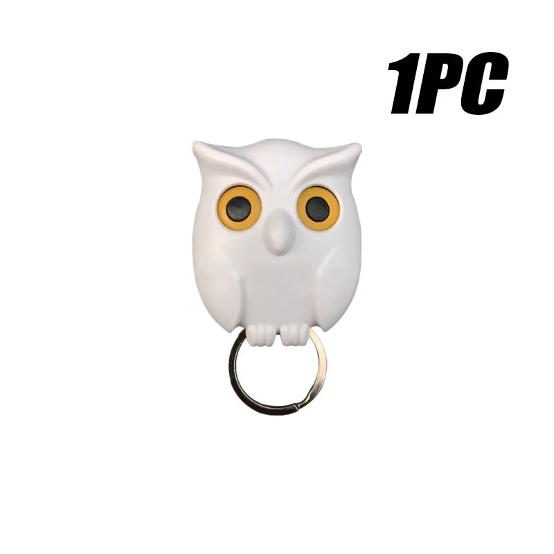 Cute Owl Magnetic Key Hook: Auto Blinking, No Punch, Kitchen Home Wall Decoration Storage Solution White 1PC