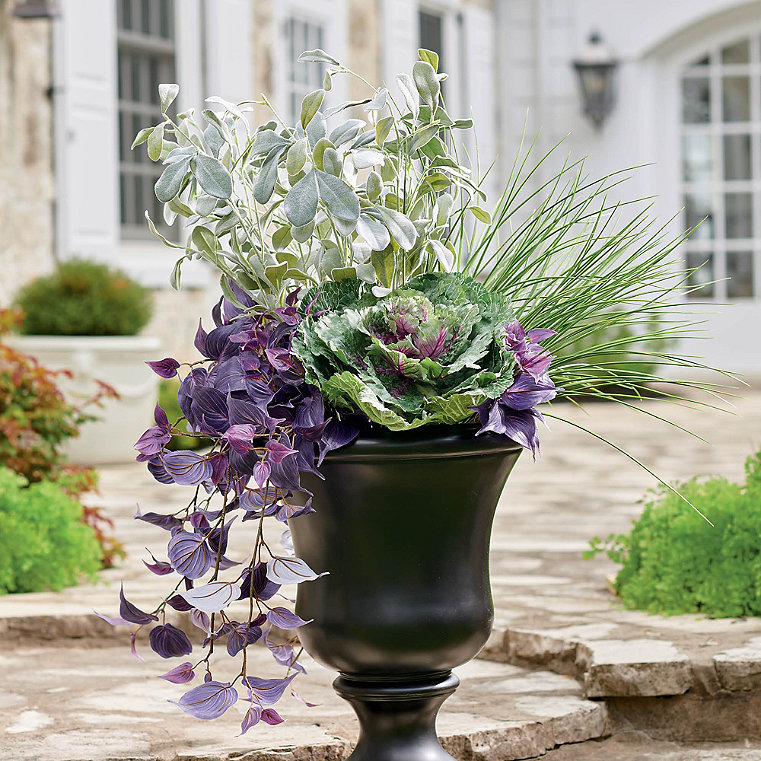 Augusta Easy-Care Pedestal Planter - Black, 26"H/Black - Grandin Road