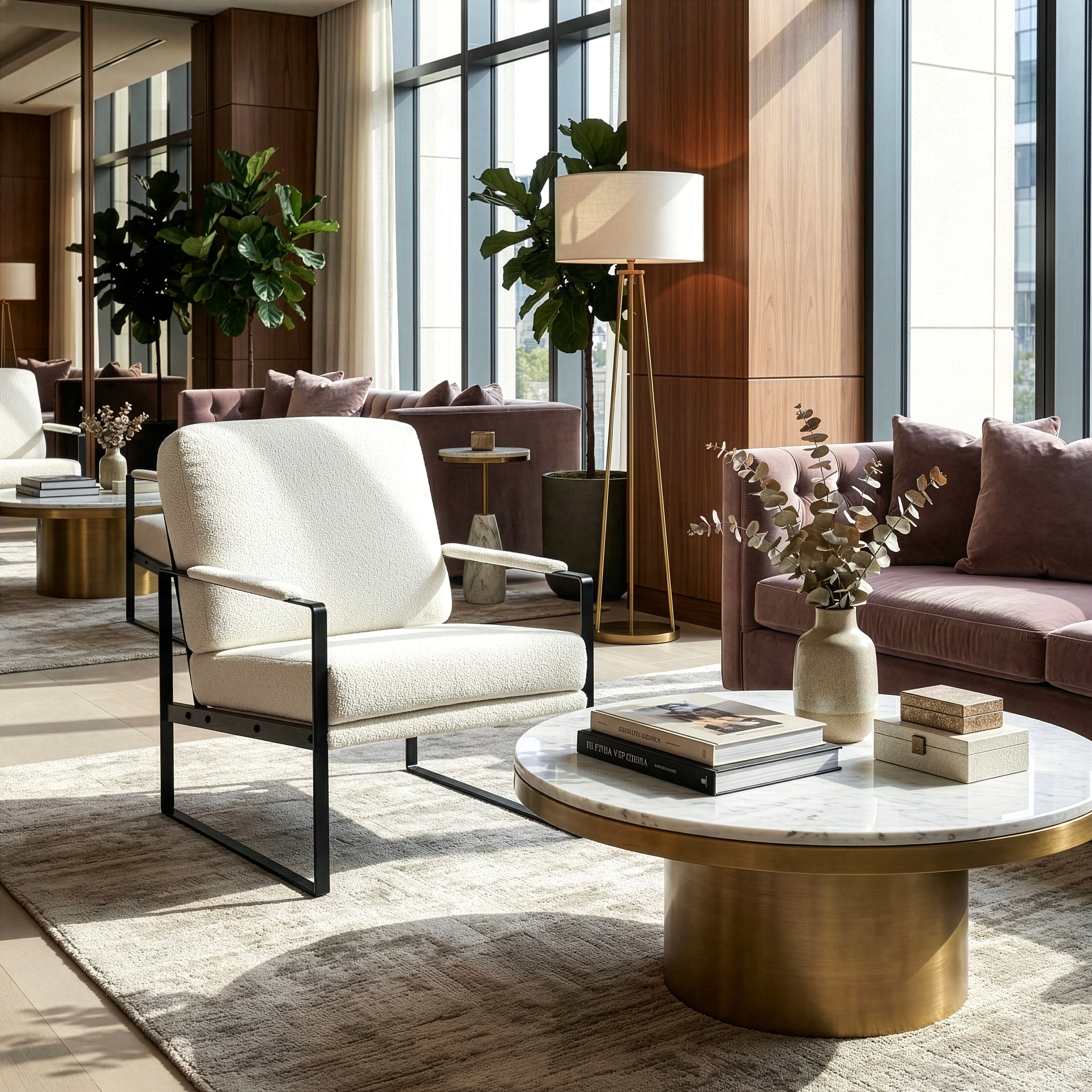 Ayume White Boucle Accent Chair with Black Iron Legs