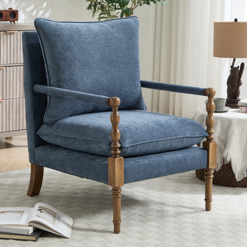 HOMEFUN Mid-Century Modern Solid Wood Reading Accent Armchair with Removable Upholstered Cushions for Living Room
