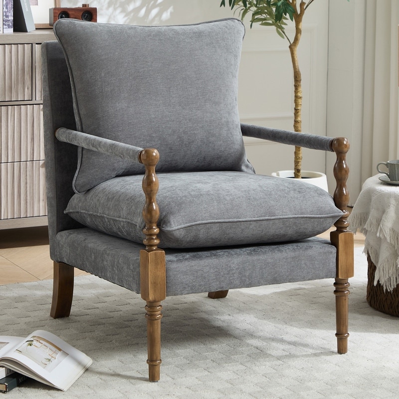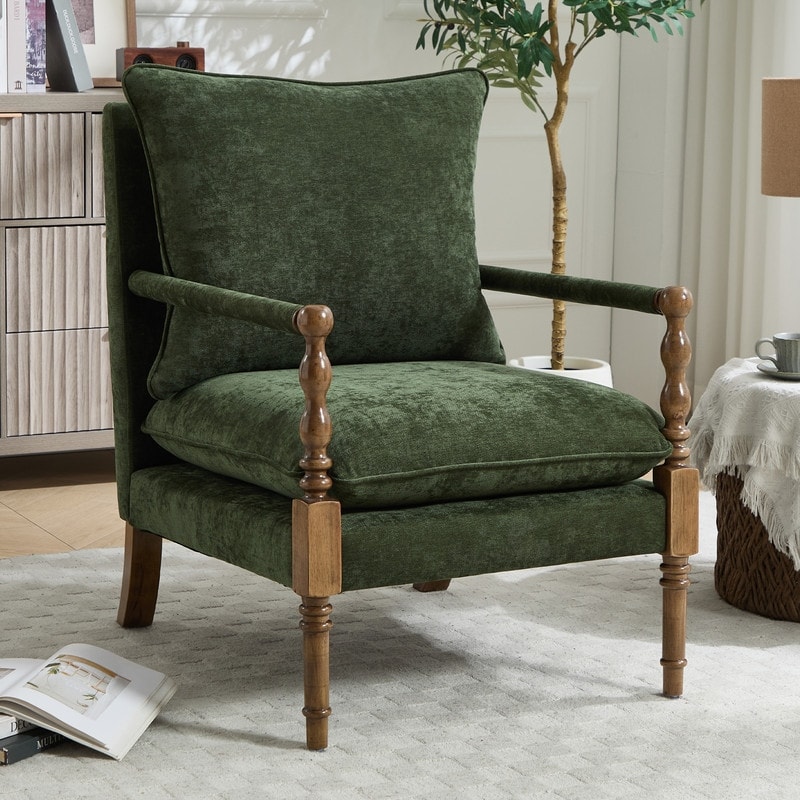 HOMEFUN Mid-Century Modern Solid Wood Reading Accent Armchair with Removable Upholstered Cushions for Living Room