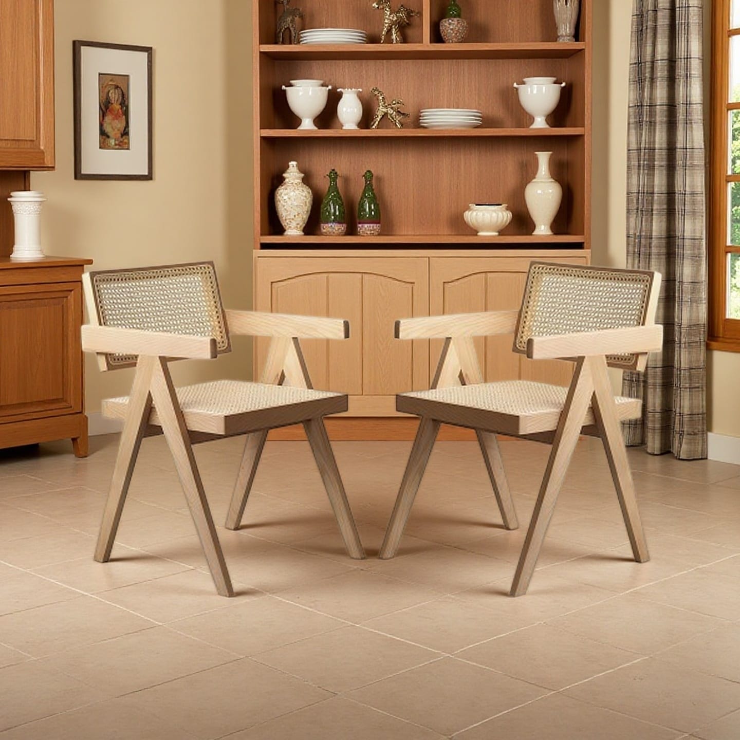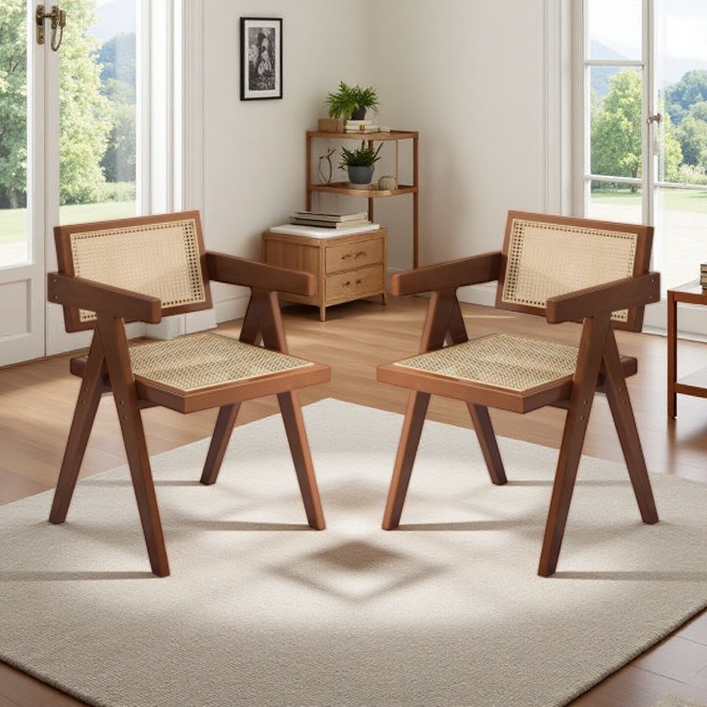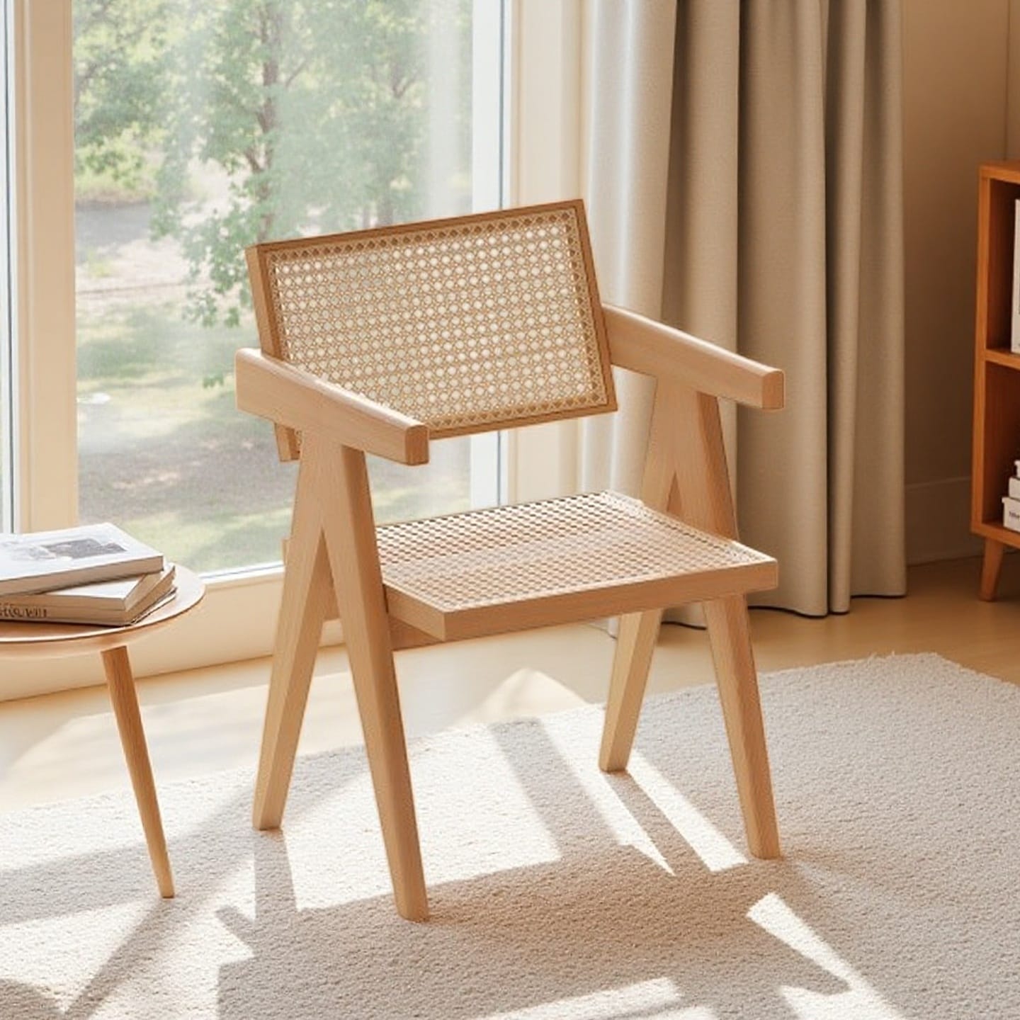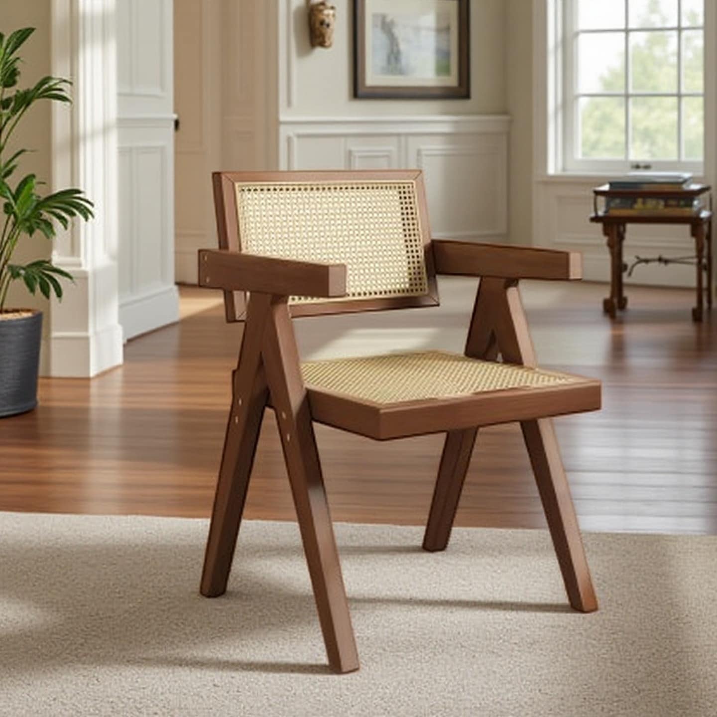 Mid-Century Style Rattan Dining Armchair with Wooden Frame, Comfy Upholstered Accent Chair