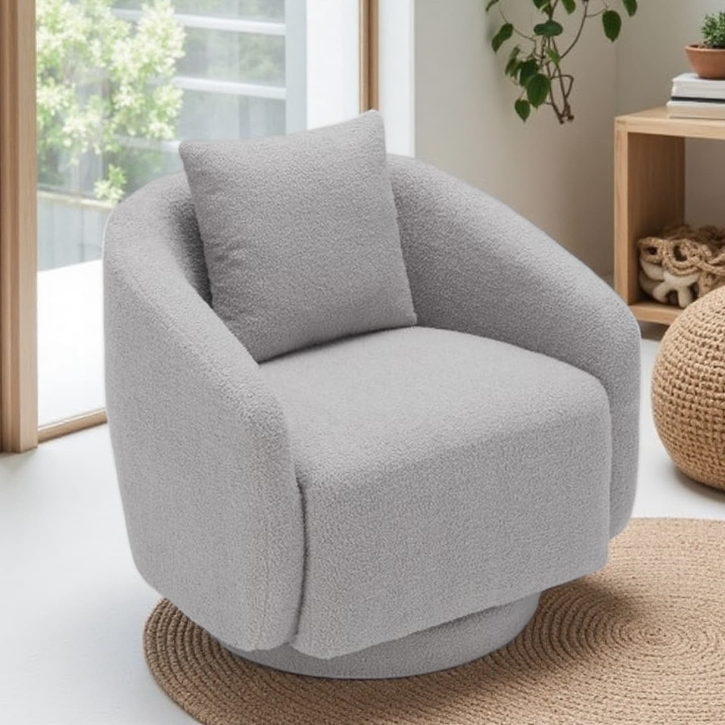 360° Swivel Barrel Accent Chair with Back Pillow, Upholstered Teddy Fabric Armchair with Solid Wood Frame
