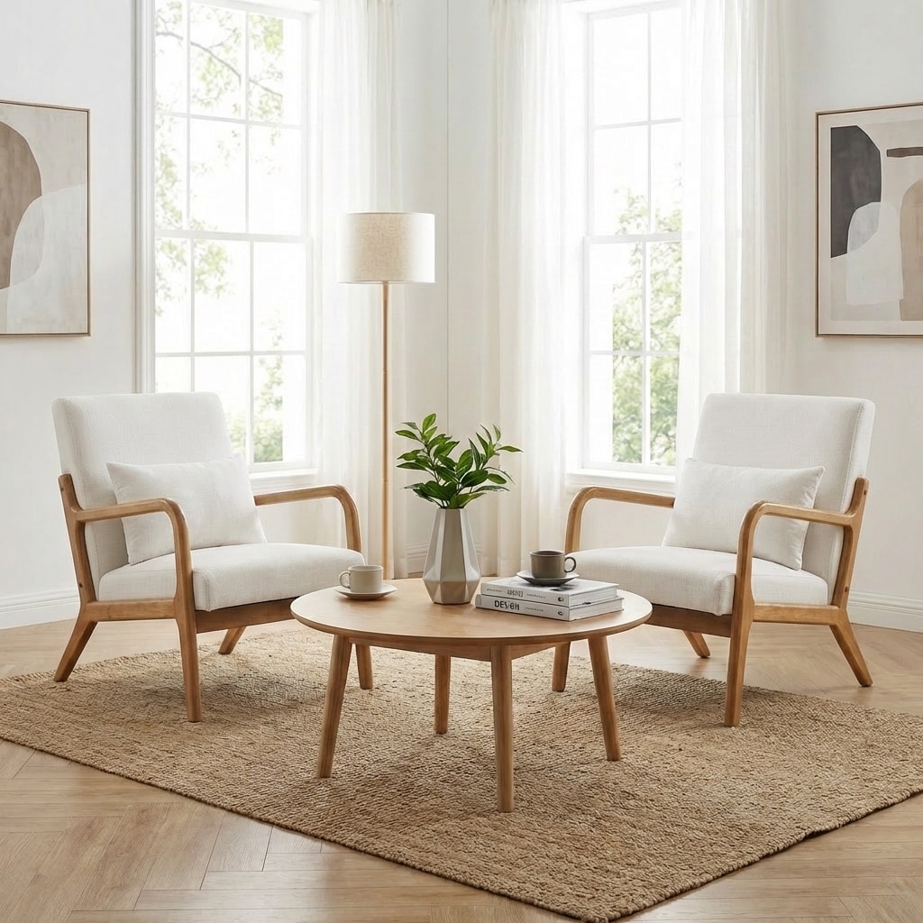 SEYNAR Mid-Century Modern Linen Accent Chair Set of 2 with Solid Wood Frame.