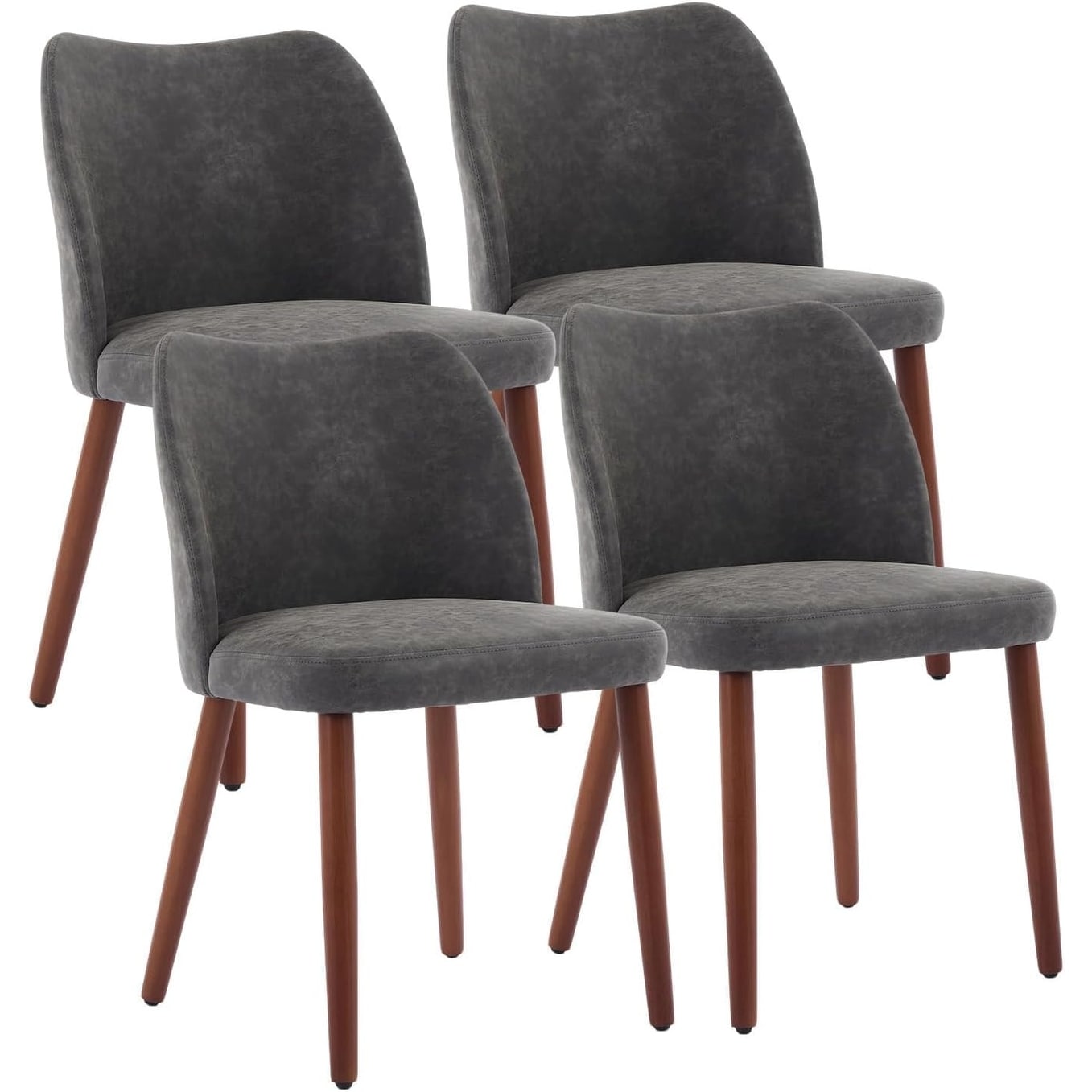 Set of 2 Upholstered Armless Dining Chairs Curved Back Wood Legs