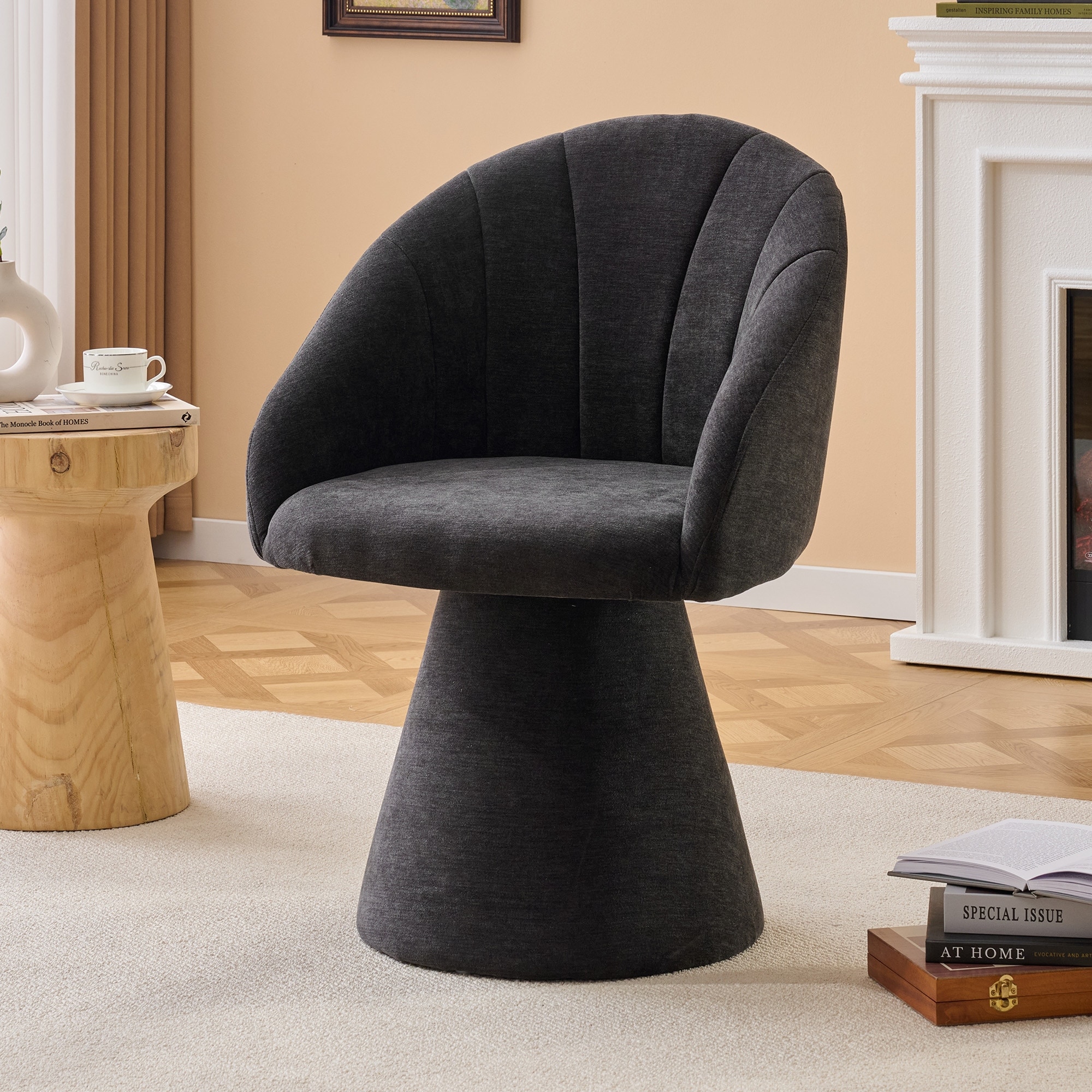 Chenille Swivel Accent Armchair with Ergonomic Curved Backrest