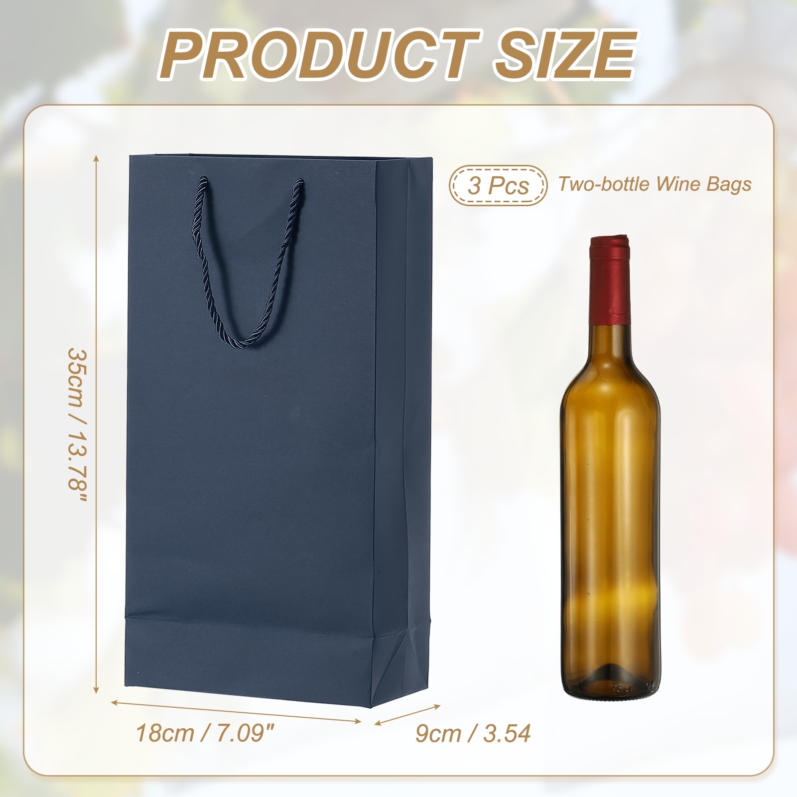 Wine Gift Bag, Double Bottle Kraft Paper Wine Bags Gift Tote Carrier Bottle Bag with Handles Bulk for Wedding
