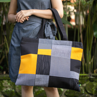 'Javanese Lurik Hand-Woven Patchwork Cotton Travel Tote Bag'